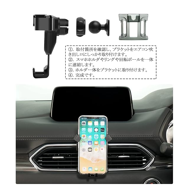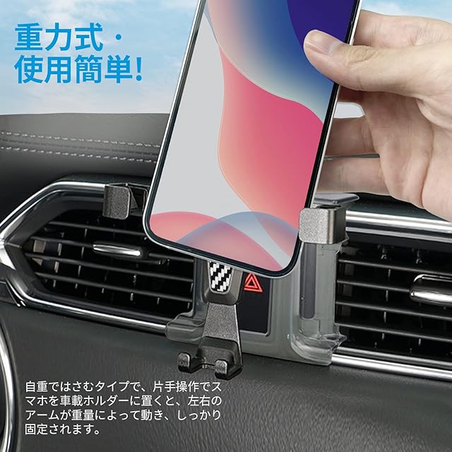 【CDEFG】スマホ車載ホルダー マツダ CX5 2代目 KF系 2017年- 専用 車載ホルダー 重力式 エアコン吹き出し口用 片手操作 安定感 車載電話マウント 角度調節 4-6インチに適用 充電OK スマホ保護ゴム付き カスタムパーツ 取り付け簡単