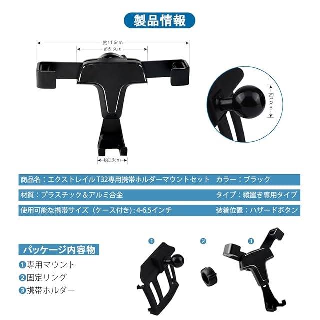 【適応車種】日産 エクストレイル T32系(2013-2022)専用のステー&車載ホルダーセットです。車種専用設計なので、フィッティングは良いです。(※年式やグレードにより、ハザードボタンの形状が異なる場合がございます。画像にて形状をよくご確認下さい。)
