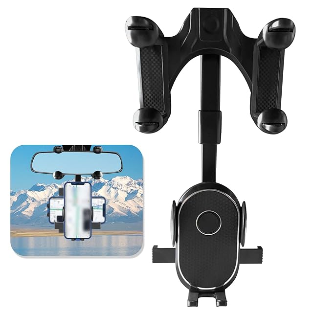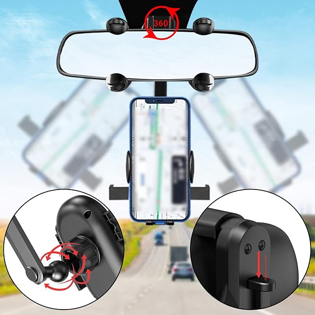 多機能バックミラー電話ホルダー: このバックミラー電話ホルダーは、引き込み式の上下4本爪アップグレード設計を採用しており、各爪にはソフトパッドがあり、バックミラーにしっかりと固定されます。