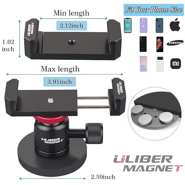 [はるかに強力な磁気携帯電話マウント]: ULIBERMAGNET磁気電話マウントホルダーは、携帯電話を安定して固定するために使用されます。 下部には強力なマグネット吸盤があり、車体アイアン部分にしっかりと取り付けることができ、安定した撮影環境を提供します。 落下や不安定な心配はありません。