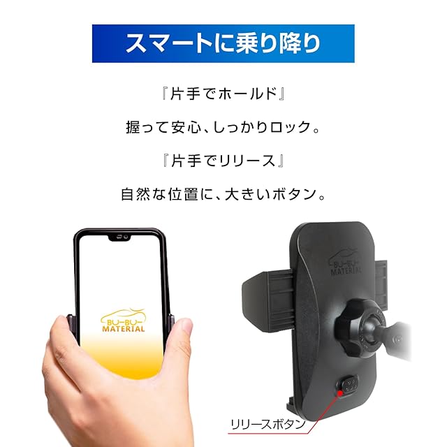 【シンプルで使いやすい】●スマホを固定するサイドアームは手帳型やリング付きの厚みにも対応。グリップの良いシリコンゴムでがっちり固定します。●片手で簡単。ホールド&リリース。スムーズなギアが品質の証。●アームは5.5cmの無段階伸縮。適切な位置に調整してください。