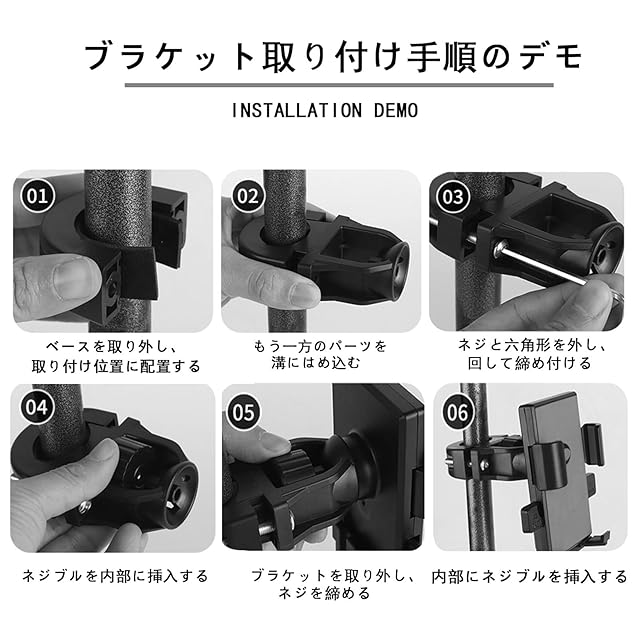 取り付けはとても簡単です!: 携帯電話のホルダーをトラックの取っ手に取り付けてください、直径3 cm以下の取っ手に適しています。台座の両脇にある調整ボタンを押すことで、簡単に取り付け・分解ができます。