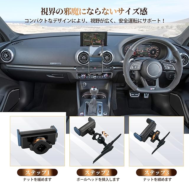 【対応モデル】ベース:アウディ A3 3代目 8V (2014~2020) ホルダー:iPhone/Samsung/Sony/Google/Huawei/Xiaomi/OPPO/LGなどのすべてのモデルで利用できます。