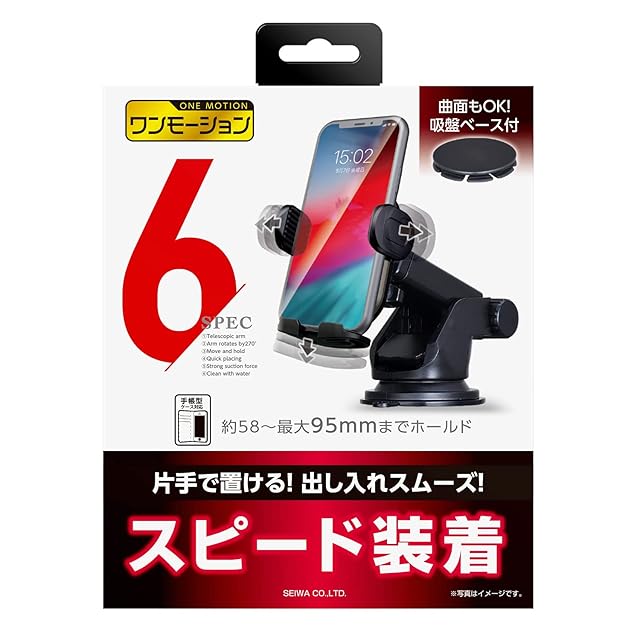 セイワ(SEIWA) 車内用品 スマホホルダー 置くだけ簡単ワンモーション スマホホルダー 車載 吸盤スタンド付 吸盤 WA66 ダッシュボード 手帳型ケース対応 伸縮アーム