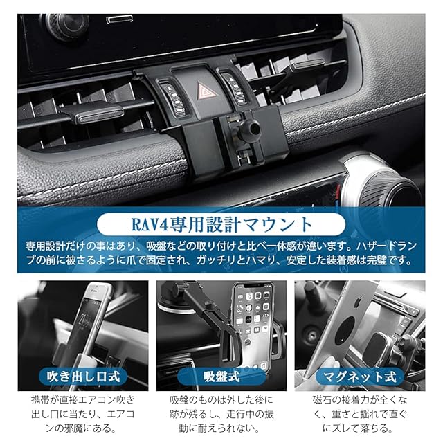 【フィット感良い】トヨタ・RAV4 50系専用に設計されたスマホホルダーとマウントセットです。
