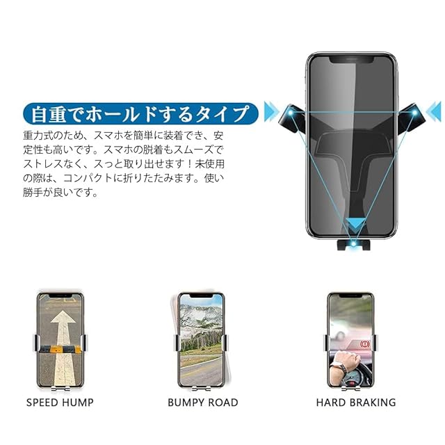 【シンプルなデザイン】自重式で、充電口開け。通販しているものより小さいのに、しっかり携帯をホールド可能!安定感があります。