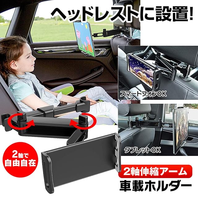 車載 タブレット ホルダー ヘッドレスト スマホ ホルダー 360度 回転 2軸伸縮アーム 10.5インチ iPhone Android KIT36
