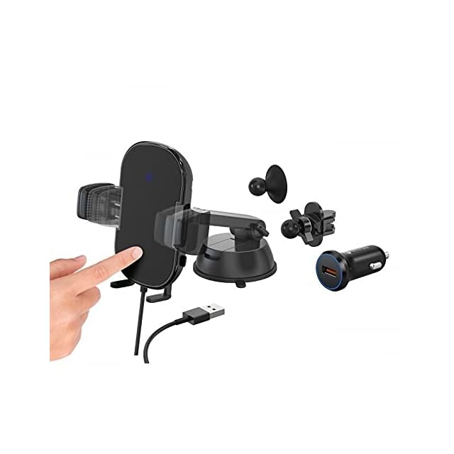 電動オートホールドワイヤレス充電スマホホルダー(QuickCharge3.0) 3ウェイセット(吸盤/エアコン/テープ貼付け) BHC-01
