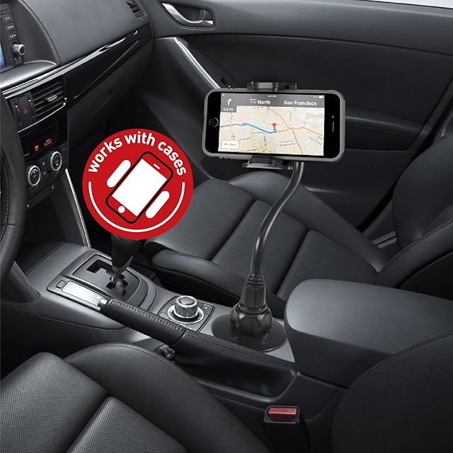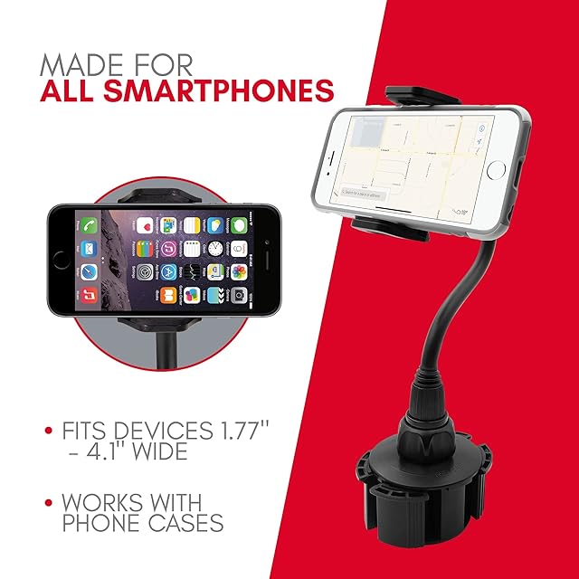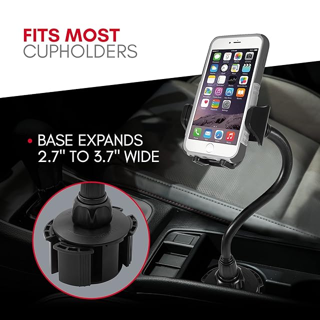 スマホ 車載 カップ ホルダー ドリンク ホルダー くねくねアーム 長さ20cm 360度回転 取り外し簡単 ワンタッチボタン付き iPhoneXMAX/XS/XR/X/8/8+/ 7/7+/6/6+ Samsung Xperia XZ3など幅1.77〜4.1インチ間のスマホまたはデバイスなどに対応(MCUP2XL)