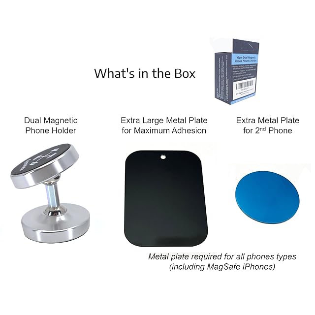 金属プレート2枚付属 (すべての携帯電話に必要): 携帯電話用の粘着金属プレート2枚が付属します:大きな長方形のプレート1枚と小さな丸いプレート1枚。 金属プレートは、強力な磁気力を確保するために、電話機の背面 (薄いケースの場合) またはケースの背面 (厚い場合) のいずれかに配置する必要があります。 MagSafe iPhone (12、13、14) やMagSafeケースを含むすべての携帯電話に金属プレートが必要です。