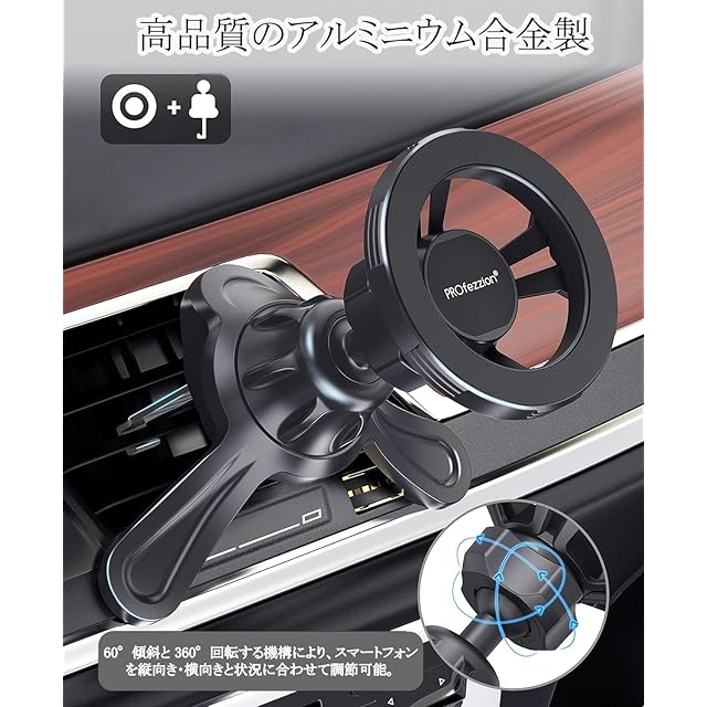 PROfezzion MagSafe 車載 エアコン吹き出し口 磁気スマホホルダー MagSafe車載ホルダー 超强磁力 吹き出し口式 車用 スマホホルダー マグネット 片手操作 iPhone 15 15 Pro Max 15 Pro 15 Plus iPhone 14 14 Pro Max 14 Pro 14 Plus 13 12 11 シリーズ 全機種対応 角度自由調整