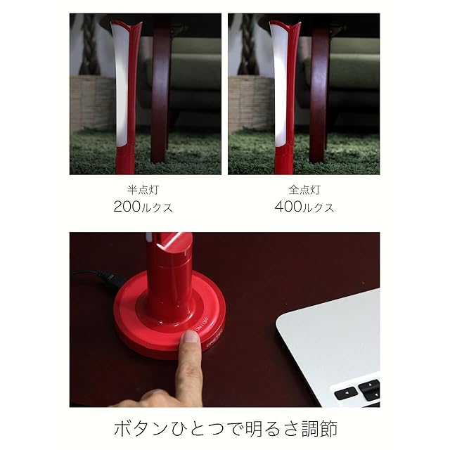 2段階で明るさを調節できます(半点灯:200ルクス、全点灯:400ルクス)