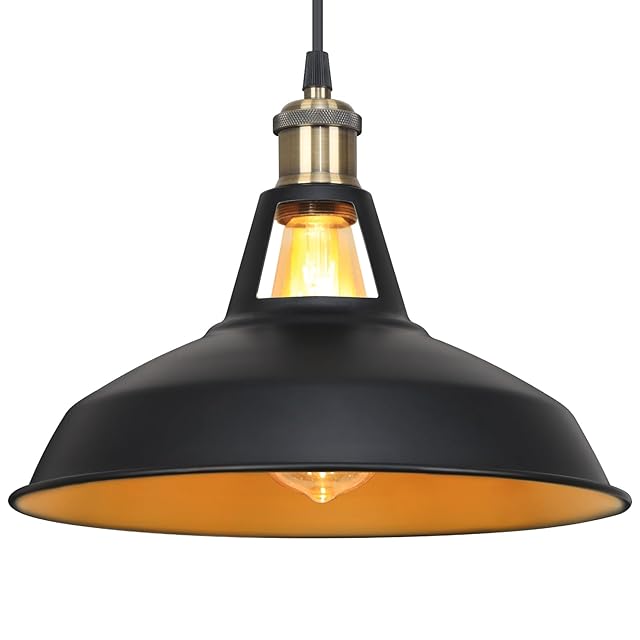 Haian Support ペンダントライト レトロ 照明器具 E26 引掛けシーリング 1灯 黒 天井照明 LED 電球対応 電球別売り 北欧 インダストリアル 鉄 リビング ダイニング 食卓用 簡単取り付け 工事不要