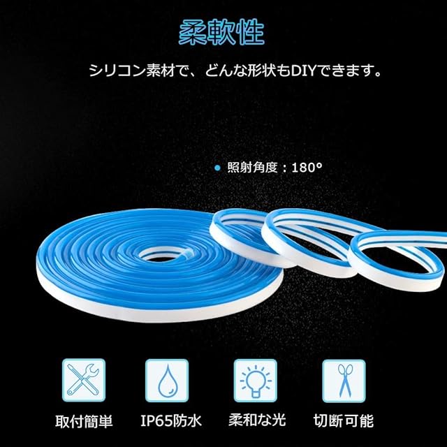 LEDネオンライトは光の強さがあり遠くからでも視認しやすい作りになっています。専用のシリコンチューブが光を拡散するため、LEDチップ発光のツブツブ感が気になりません。