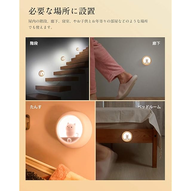 「商品仕樣」商品名:LEDじんかんセンサーライト / 入数:1個入り / 色:ピンク / 使用場所:室内 / 電池容量 :600mAh / 電流:60mA / 消費電力:1.5W / 色温度:4000K / ご購入日から1年間のが付いており、もし、商品に何か不具合、ご使用中何か不明点や問題がありましたら、いつでもお気軽にご連絡ください。
