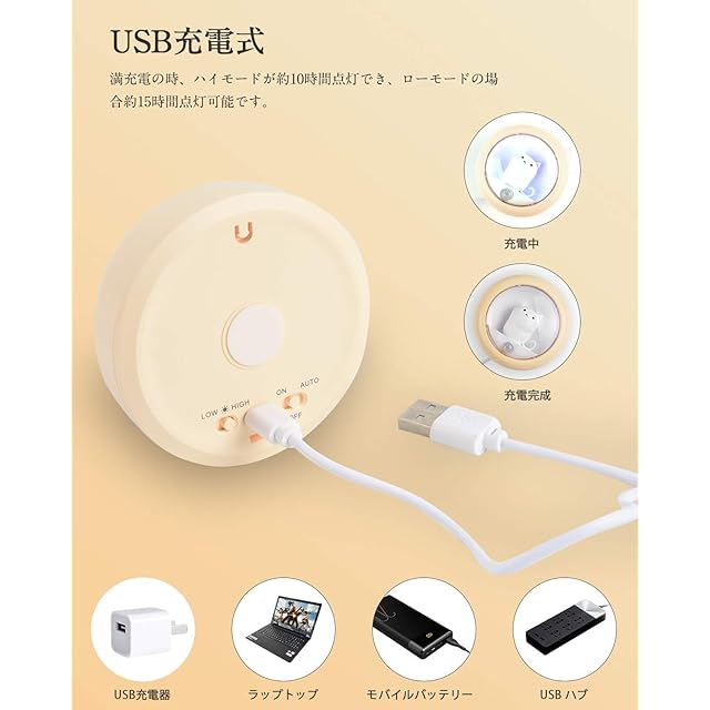 「照度調節」2段階の照度がありますので、状況に応じて明るさを選ぶこともできます。常夜灯や読書灯、懐中電灯として使用はもちろん、モードライトや玄関用の補助照明などとしてもピッタリでしょう。
