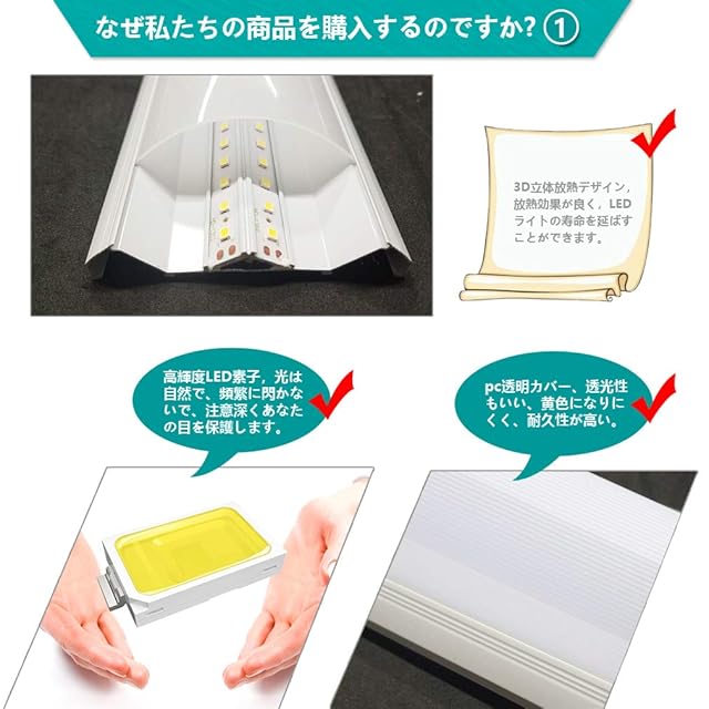 【取付簡単、高性能】LEDベースライト 工事しやすい、天井を取り外さなくて済む、取付取扱い書を送付、素人でも取付可能。 高性能:電磁波ノイズ障害対策済 フリッカーなし、難燃タイプ、絶縁Aタイプ、アルミニウム完璧放熱、また防塵,防曇,防爆 。!!!注意:商品本体にはスイッチがなく、リモコン操作にも対応しておらず、設置場所には壁付スイッチが必要です。