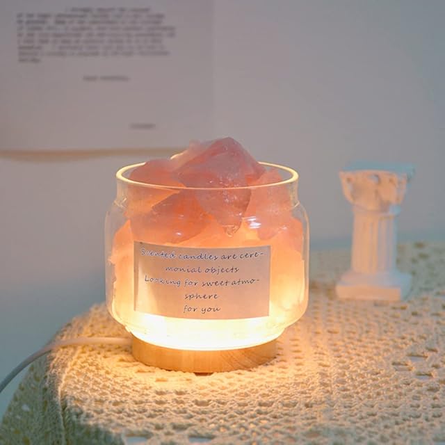 ◆ランプホルダーの使い方:岩塩をガラス皿に入れ、ガラス皿をランプホルダーに置き、スイッチボタンをオンにします。