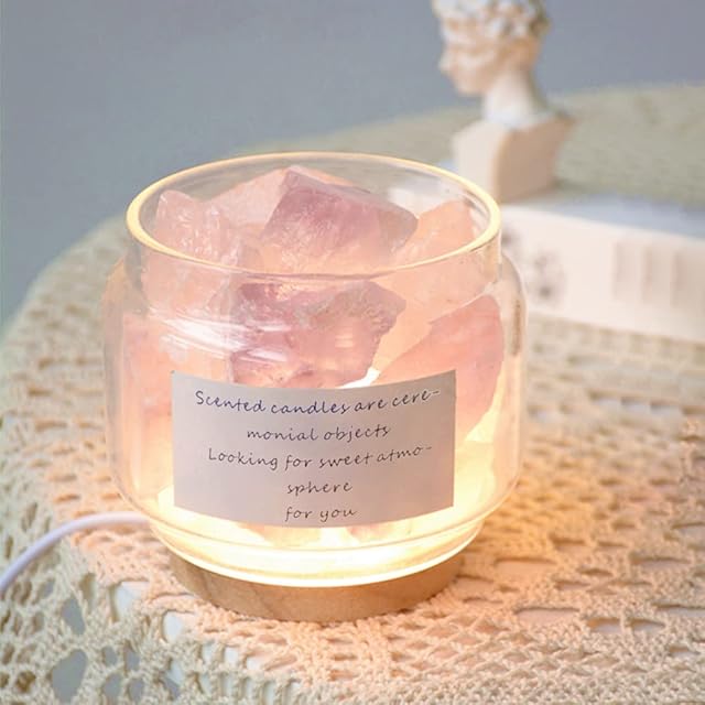 HIGHAWK アロマランプ アロマライト 天然水晶 クリスタル ベッドサイドランプ ランプ台座 アロマ用 照明 ナイトライト クリスタルストーン(ピンク+アメジスト水晶)