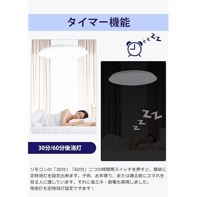 【お休みタイマー&常夜灯モード&明るさメモリ】就寝時に便利なスリープタイマーは30分/60分で設定できます。設定後、適応な時間を経つ後自動的に消灯でき、節電・消し忘れ防止。ライトを消すと眠れない人におすすめ。 低ワット数、低消費電力の「豆球常夜灯モード」も付いて、一人寝て始めたばかり子供の部屋また夜間授乳に最適です。明るさメモリ機能:調節された明るさをメモリできます。再開する時、わざわざ調節必要がなくてとても便利です!