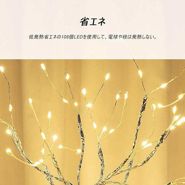 【常夜灯安全·省エネ】間接照明 スタンド低発熱省エネのLEDを使用して、電球や枝は発熱しません。授乳ライト12V低電圧アダプターで安全性も高い。ブランチツリー 枝の表面は防水素材で覆われているので、お手入れが簡単なだけでなく、安全の問題も軽減されます。c