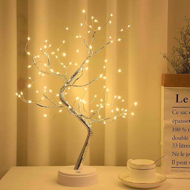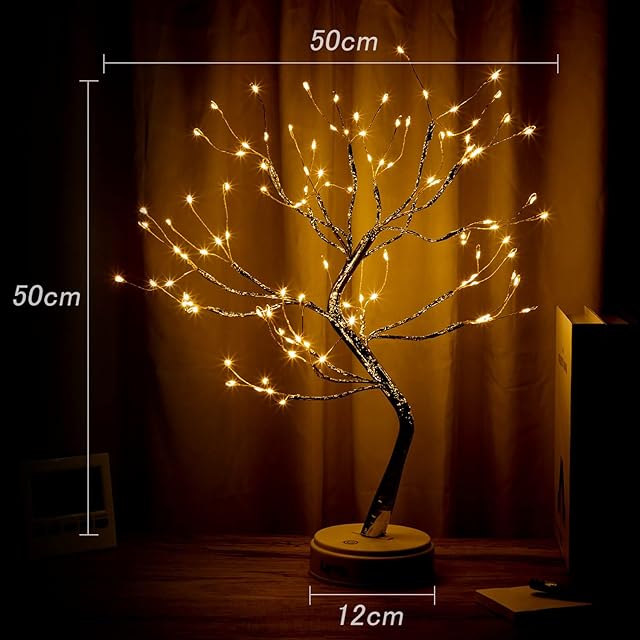 【DIY·LEDツリーライト】テーブルランプ高さ約50cm、108個LEDライト。材料はABS+銅線。ブランチツリー暖かな光を放つ、ロマンチックな雰囲気を作ります。間接照明薄暗い場所でもっときれいになります。ナチュラルな枝型デザインで、思うがままに曲げたり、広げたりすることができます。好きなオーナメントを加えて、さまざまなスタイルを作ることができます。