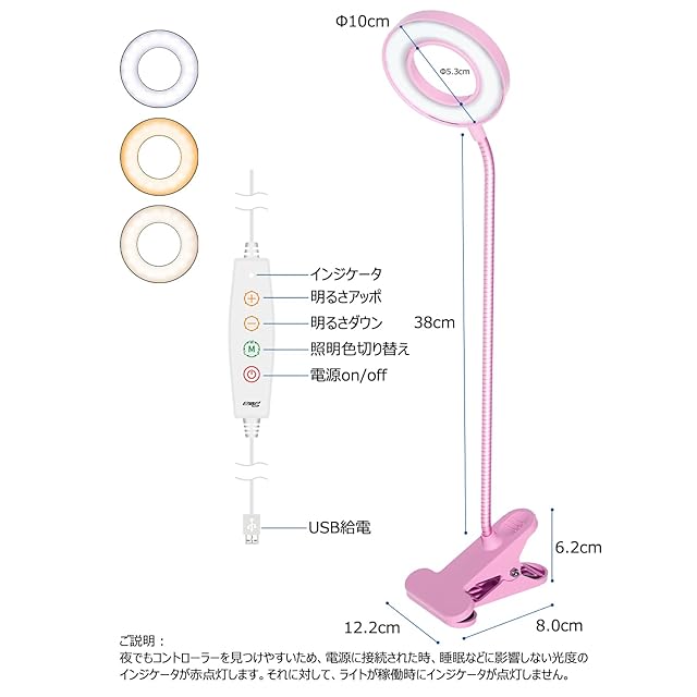 【高品質・目に優しい】約50000時間使用可能な高品質LEDユニットを採用、長らくご利用いただける製品です。40個のLEDライトを採用し、市販類似品最大(800ルーメン)より最大光度(1000ルメーン)が優れ、長時間使用しても目が疲れにくいです。それに、発光リングが2センチ広く自然光に包まれるように目に疲れが感じにくく、日中や夜間でも適当な照明光度で眩しすぎず、暗すぎず勉強、読書、デスクワーク、授乳などに最適です。