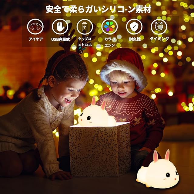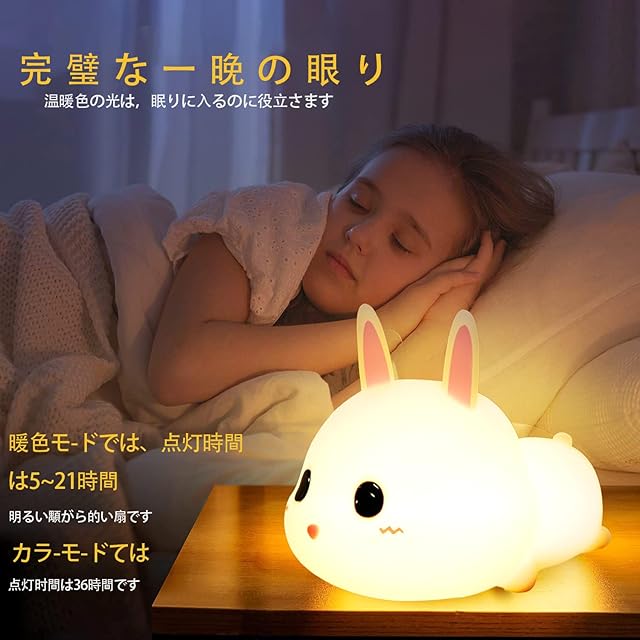【目に優しい光】LEDチップが優れており、明るすぎず温かみのある優しい光なので、完全に目が覚めてしまって眠れなくなる心配がありません。怖い暗闇の中、かわいいウサギが見守ってくれて、強い気持ちにさせてくれることでしょう。また、柔らかいシリコン素材は肌触りがよく、夜中や早朝の光が弱い時間帯に目が覚めたときなど、お年寄りやお子様の使用にも最適です。