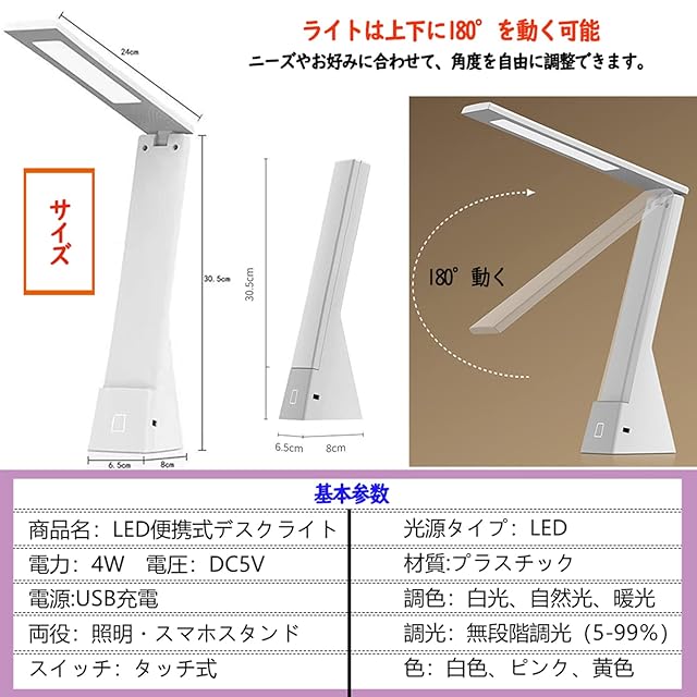 【多機能・持ち運びに便利】電話スタンドとして使用できるので、簡単に電話を置いてビデオを見ることができます。 滑り止めベースで作られたled読書灯は、デスクトップ上でより安定しています。 この折りたたみ式LEDデスクランプは、コンパクトなデザインと180°の柔軟なアームを備えており、照明の調整に対応します。