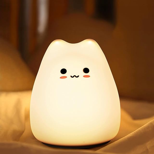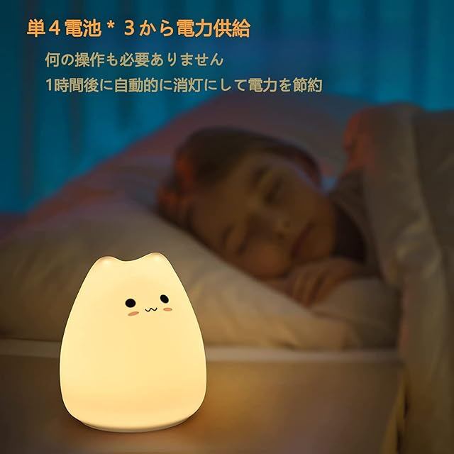 ZHOU 猫ナイトライト 子供安全素材 多色調光 7色の変色 間接照明 電球色 常夜灯 授乳ライト 1時間自動消灯 安全シリコン製 かわいい猫 タッチ式制御ナイトライト 子供幼児 誕生日プレゼント クリスマスプレゼント 寝室 枕元ライト 簡易日本語取扱説明書付属 (猫ライト)