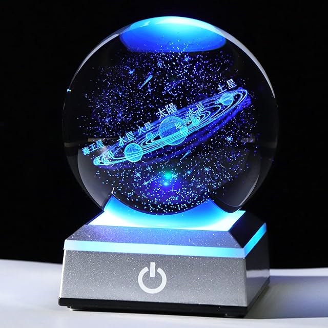 Kertari 誕生日プレゼント男性 彼氏 メンズ 人気 【正規品】K9クリスタル 3D 宇宙 太陽系 80mm LEDライトベース USB充電 おしゃれ 置物 子供、孫、天文ファン、スターゲイザーへの贈り物