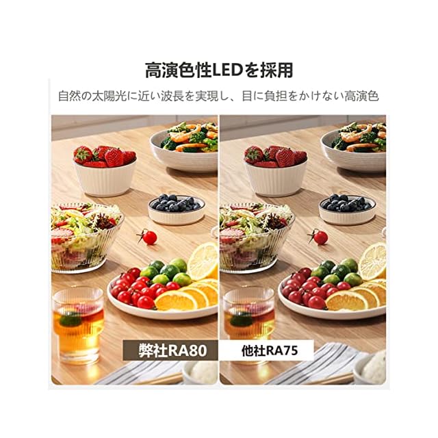 【高輝度、省エネ】消費電力はただ9Wですが、980lmの明るさを提供できます。それは伝統の50W-100W白熱電球に相当します。白熱電球に比べて、電気代を90%節約できるし、電球交換の手間も省けます。高輝度と省エネを両立できます。
