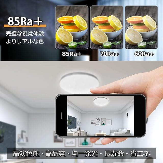 【調色調光&高い演色性】高発光効率のLEDチップと高い光透過率と高品質のランプシェードを採用し、照明効果が均一、より明るいです。演色性はRa 85以上に達し、物の自然色を高度に再現する。照明が安定していて、紫外線が発生しないので、子供は本を読んで目を傷つけません。リモコンを利用することで、使用ニーズに応じて10 ~ 100%の輝度調整を実現でき、昼白色−昼光色−電球色(2700~ 6500 k)の光色調整を実現できる。