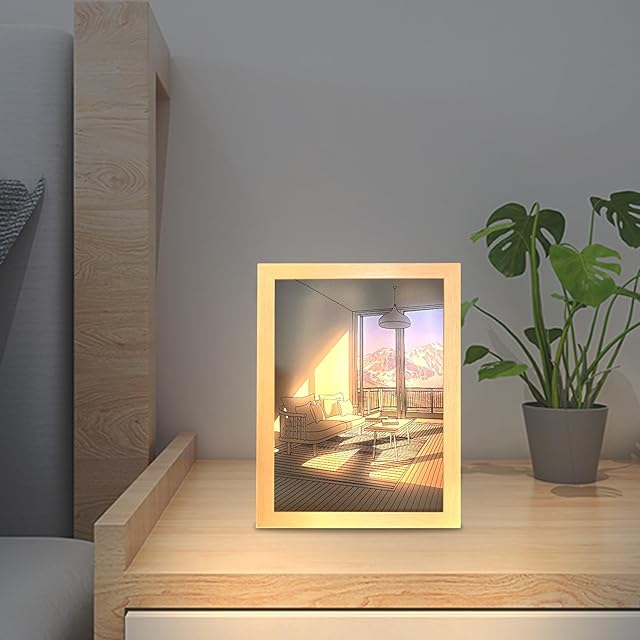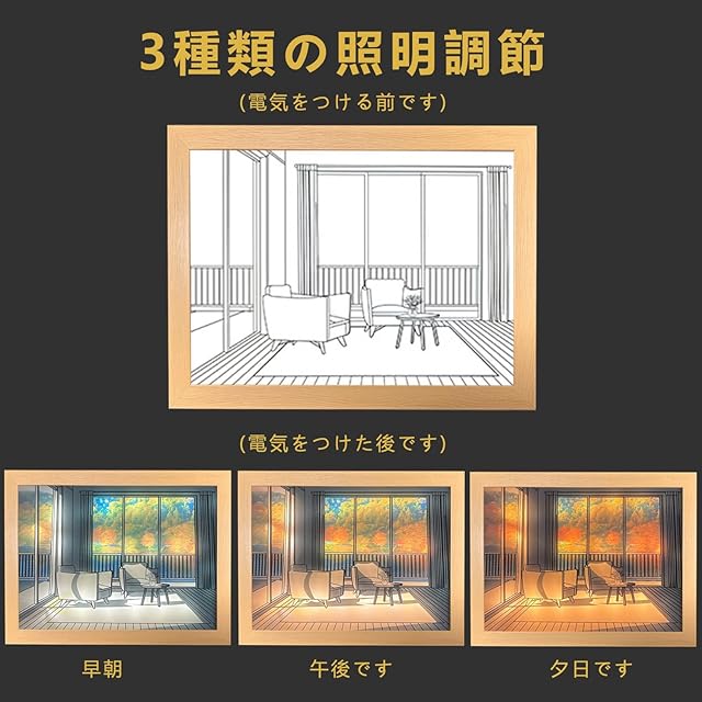 【Fumezu】照明絵画装飾 3色のLED ライト サンシャイン シャドウ フォト レーム 木製絵画 光影絵の装飾 3の色変光輝度調整可能 陽光の灯りの絵 誕生日プレゼント装飾画 灯光画 陽光の灯りの絵 リビングルームの壁アート装飾用 リビングの壁飾りの写真 壁に飾られた絵画