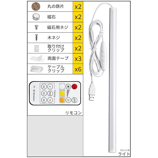 AuyiHomu LED バーライト 35cm USB ライト リモコン 調光 調色 明るい スイッチ付き マグネット タイマー機能 電球色/昼白色/昼光色 目に優しい 省エネ 工事不要 車内/卓上/デスク/パソコン照明/棚下
