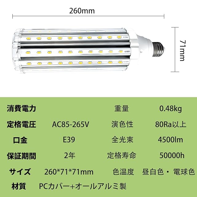 【幅広い用途】 - このLED電球は、スタジアム、街灯、スーパーマーケット、工場、倉庫などで使用できます。