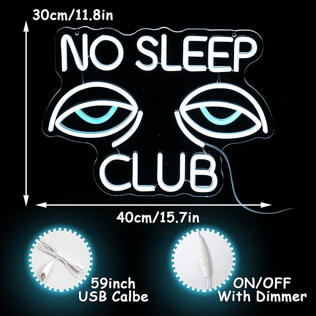 No Sleep Clubネオンサイン Eyesネオンライト ホワイトブルーledネオン管 壁の装飾 調光可能なネオンライト バー 誕生日 パーティー オフィス ベッドルーム バレンタインデーの装飾用