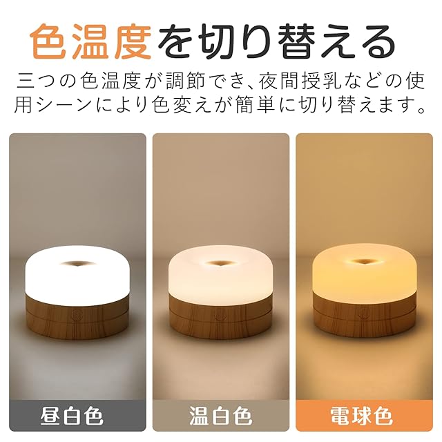 Umimile 授乳ライト ベッドサイドランプ ナイトライト 色温度/明るさ調節 USB充電式 タイマー機能 マグネット内蔵 間接照明 出産祝い ギフト 絵本ライト 木目調 led 防災