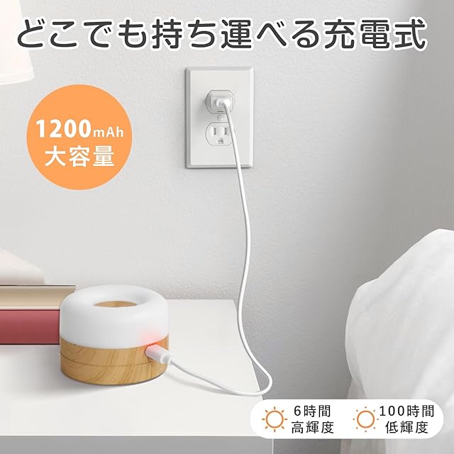 【type-c充電式・持ち運び便利】1200mAhの大容量バッテリーが内蔵されて、100時間以上連続使用できます。底面にひっかけフックを付き、お部屋間での移動、夜中トイレなどの持ち運びもラクラク!