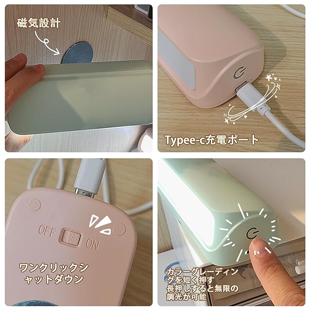 ⭐【安全電池 & 幅広い用途に対応し】USB充電,1200mAh大容量電池、約4時間フル充電、3.5時間持続照明します。デスクトップ学習、クローゼット、ベッドサイド、子供部屋などに最適です。充電中は赤いライトが点灯します。 完全に充電されると、ライトが消えます。