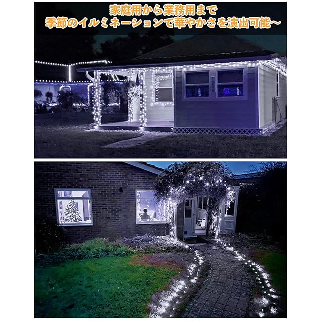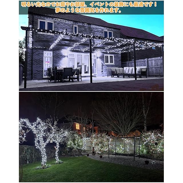 【点灯記憶装置機能で快適】電源を抜いても前回のパターンから点灯するメモリー機能付きなので、消灯しても次の日も再度同じ点灯パターンで光らせることができます。お好みの点灯パターンをお楽しみ頂けます♪クリスマスツリーや庭木・樹木やフェンスへの飾り付けはもちろん、室内の装飾や結婚式・パーティーでの演出など、幅広くご利用できます。もちろん、冬だけのイルミネーションとしてではなく、年間を通したガーデンライトとしてもおすすめです。