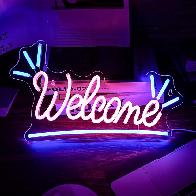 Welcomeネオンサイン 調光可能 ledネオン看板 USB ピンク ブルーネオンライト ストアショップ ホテル 喫茶店 バー パーティー装飾ライト(42.5cm⋆25cm)