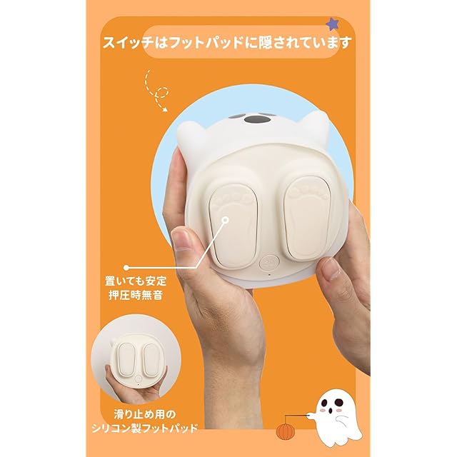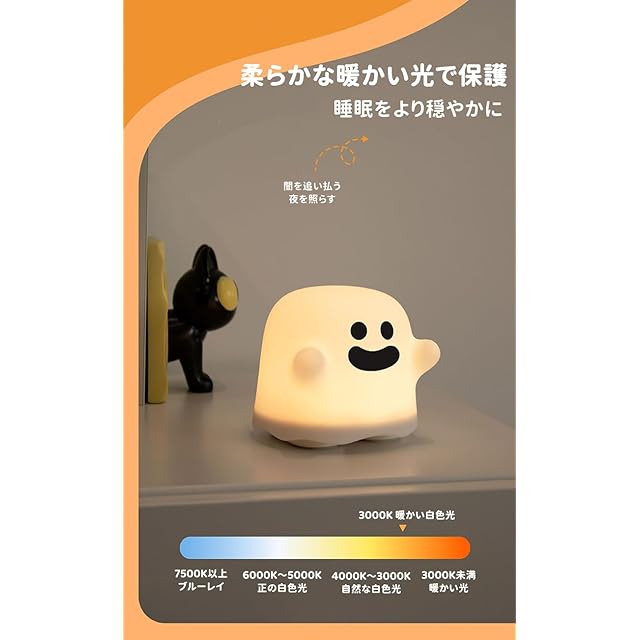 【滑り止めシリコンフットパッド】- このゴーストナイトライトは、所定の位置に留まるように考え抜かれて設計されています。 愛らしい幽霊のようなつま先を備えた滑り止めシリコン製フットパッドは、どんな表面でも安定性を確保し、偶発的な転倒や滑りを防ぎます。
