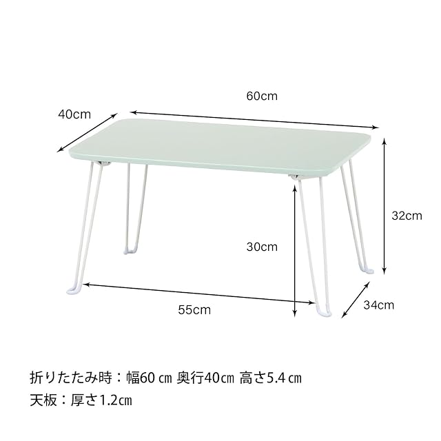 不二貿易 ローテーブル 折りたたみテーブル くすみカラー 幅60×奥行40×高さ32cm コンパクト収納 グリーン クレール 85382