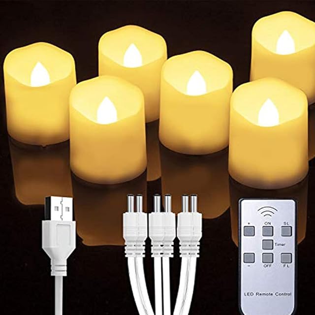 Actpe 充電式 LED 電気キャンドルライト フレームレス 点滅 ホーム ディナー デコレーション クリスマス ウェディング 誕生日パーティー お祝い ハロウィン ティーライト タイマー&リモコン付き 6個パック