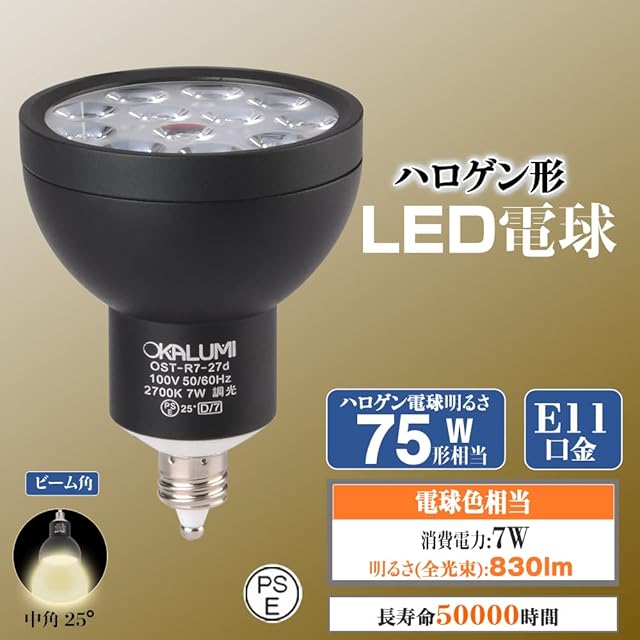 OKALUMI LEDスポットライト E11口金 調光対応 電球色 75w/100w形相当 7W 830lm ハロゲン形 LED電球 2個セット【外観:ブラック/電球色/中角】
