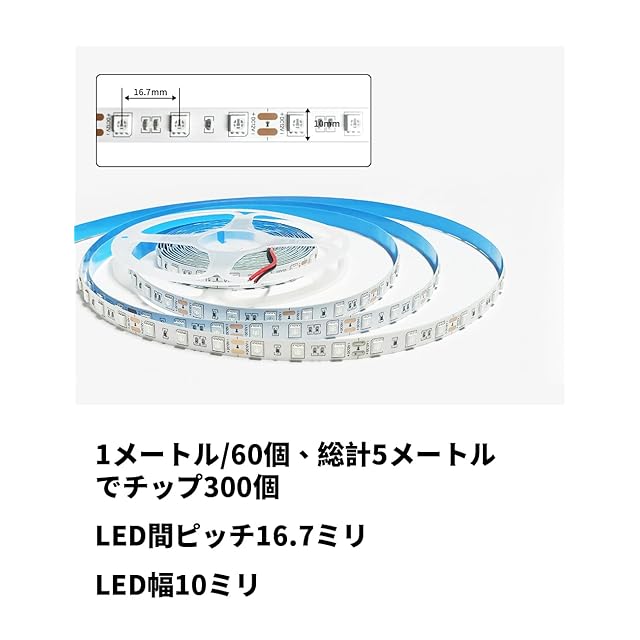 【カット可能】1メートルあたり60個のチップを搭載(13mm間隔)し。 ストリップライト全長は5メートルで、カットして長さを調節して使えます。