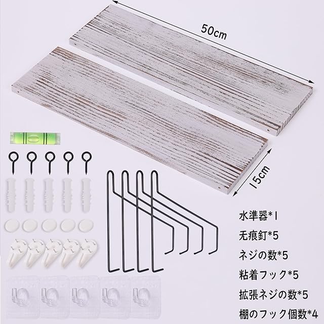 ウォールシェルフ 壁を傷つけない 50+50cm2点セット 天然桐木壁掛け棚 賃貸 壁 棚 穴あけない ウォールラック 壁に付けられる家具 飾り棚木製 簡単取り付け リビング/洗面所/キッチン/トイレ/玄関 壁棚収納(ホワイト)