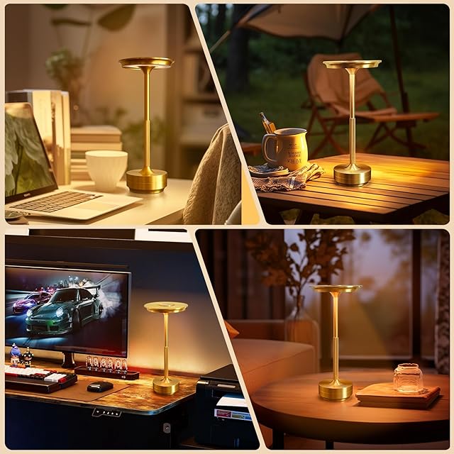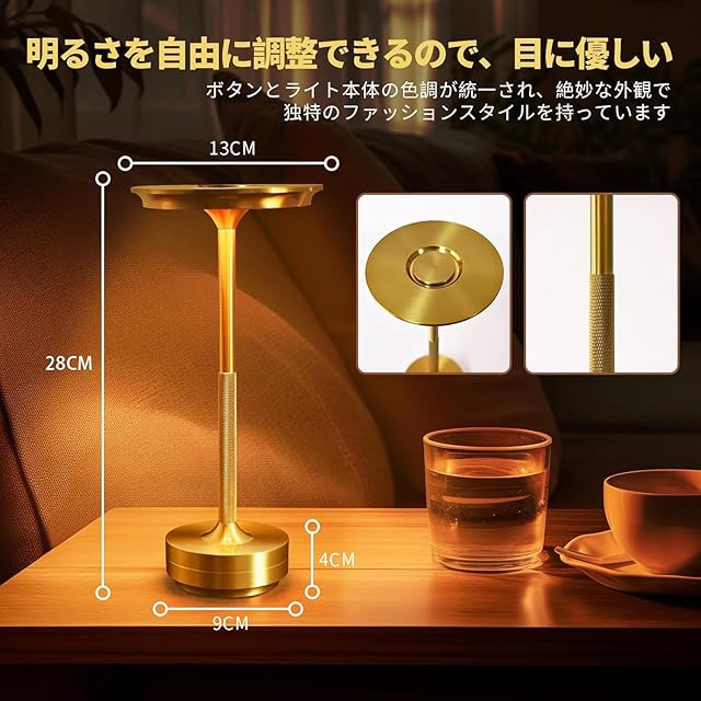 間接照明 おしゃれ PIKAFOX テーブルランプ コードレス 目に優しい メモリー機能 タッチ式 ベッドサイドランプ 卓上ライト 読書灯 メモリー機能 インテリア ライト ナイトライト 寝室/洋室旅館/ダイニングルーム 誕生日プレゼント (ゴールデン)