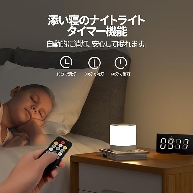【ワンタッチ式・多機能リモコン両対応】このベッドサイドランプはタッチセンサー式なので、指先でボタンを触れるだけで電源オン/オフ、色温度、無段階調光をコントロールできます。さらに、全て操作できる多機能リモコンを付き、手元で自動消灯タイマー機能を設定し、ベッドに寝転んでも楽々に使えます。使いやすいランプで授乳用ライト・おむつ替え・夜中のトイレの照明として活躍できます。隣りの人を邪魔しなく、ベッドサイドランプとしては最適です。